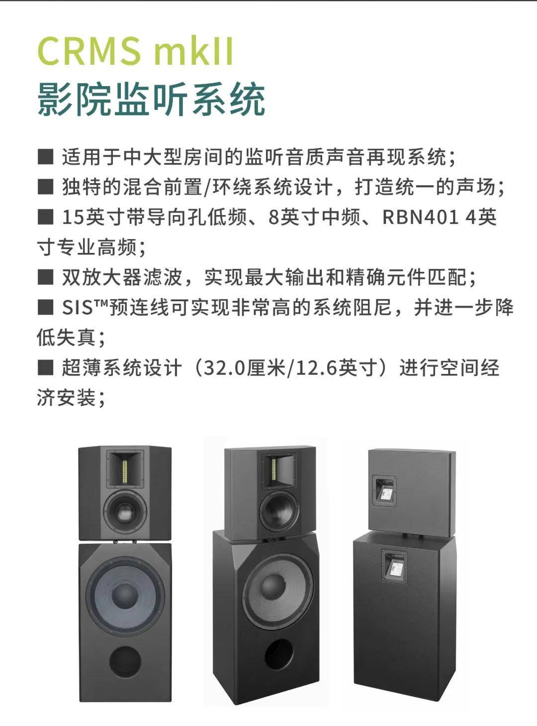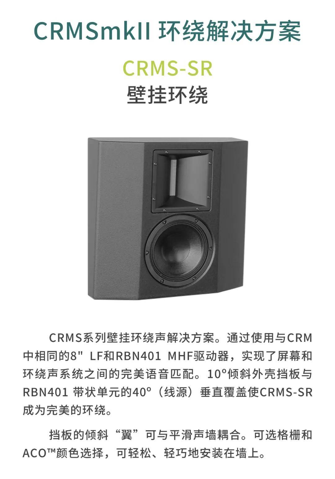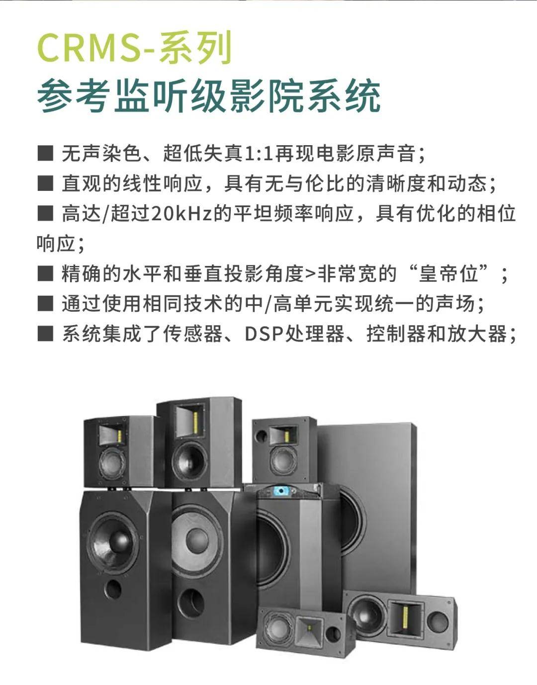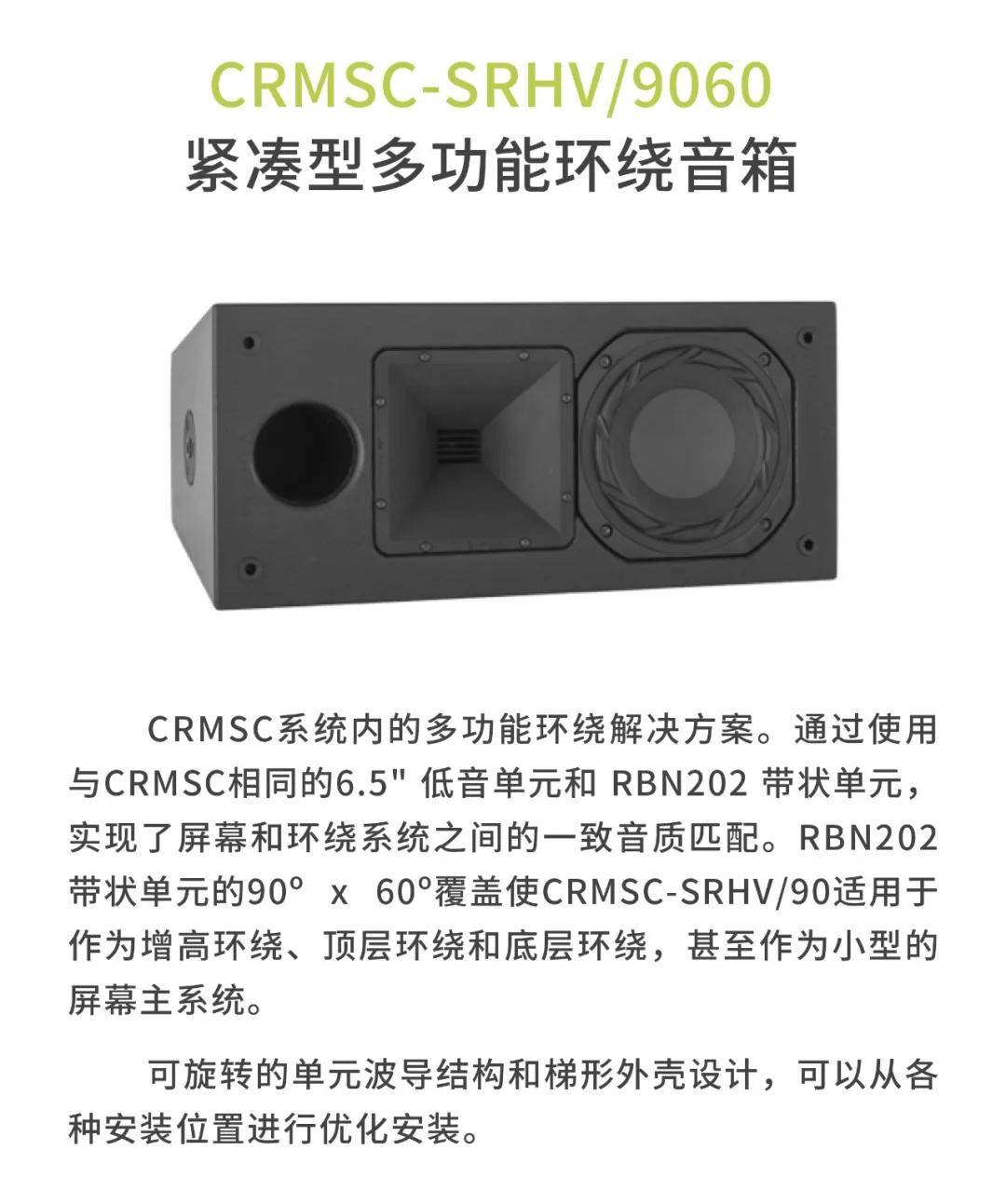 CRMS系列能提供HiFi声质以及完美的清晰度,让观众长时间观看电影都不会出现听觉疲劳。声压级覆盖整个空间,大大提升远离屏幕的观众听觉上的享受,让所有观众都能感受身临其境的效果,让观众与电影更亲近。