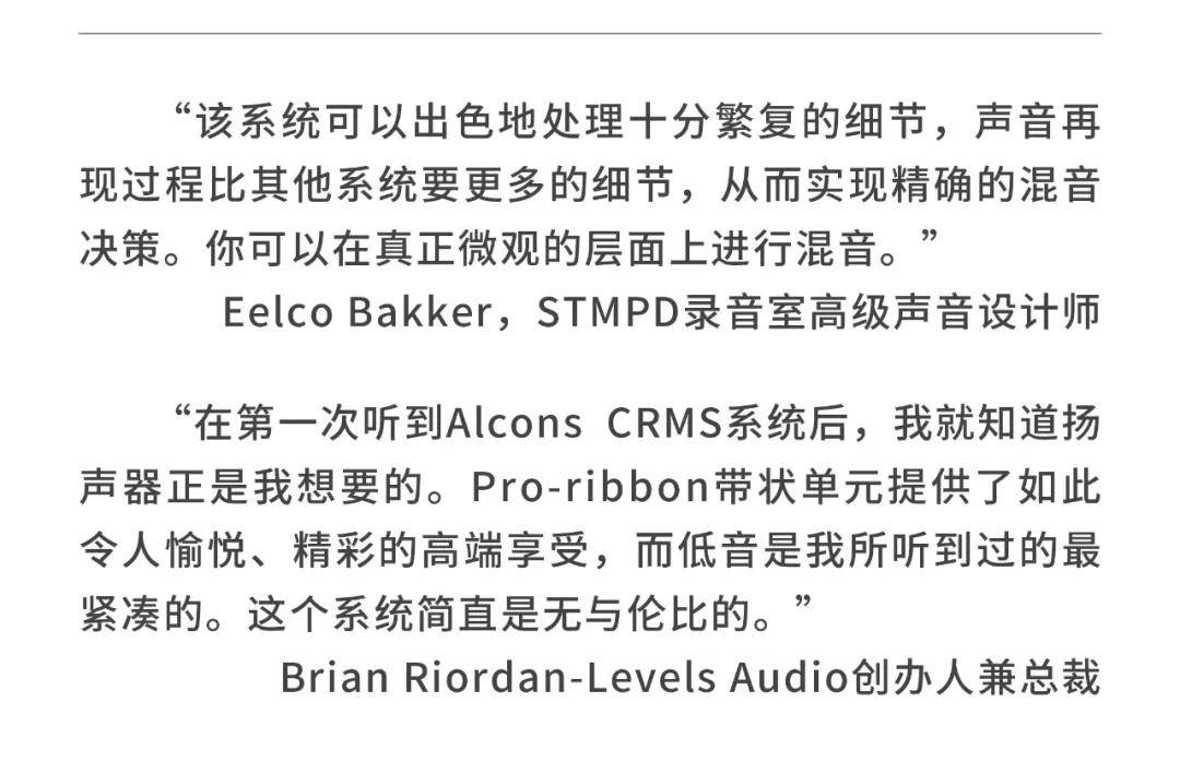 若想更深入地了解荷兰Alcons欧凯仕,可到华南(Alcons Audio)体验中心实地感受Alcons的优秀产品和解决方案。“铭峰影音”也将为大家提供更具价值的Alcons Audio(欧凯仕)资讯、技术与案例。